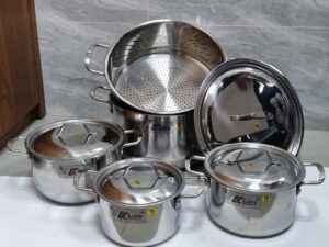BỘ 9 NỒI INOX 1 ĐÁY THÂN VUÔNG KLINS CAO CẤP 16-18-20-22-24-26-28-30-32 (NẮP INOX) – TẶNG 5 LY ĐÁ