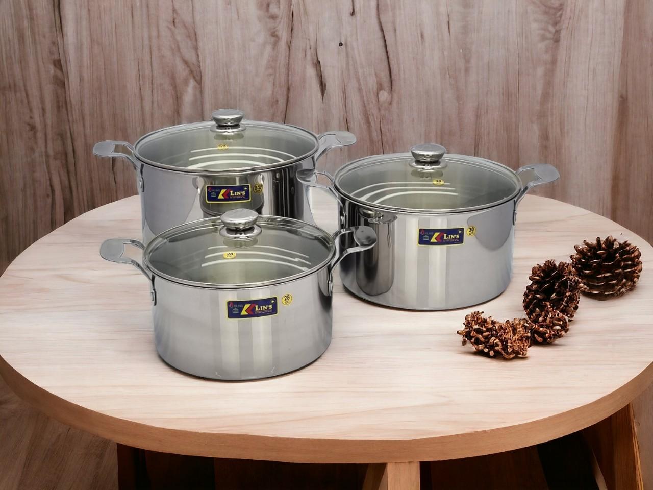 Bộ 3 nồi gòm: nồi 28cm – nồi 30cm – nồi 32cm + nắp kính phù hợp cho gia đình dùng